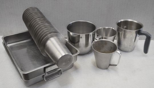 1 x Assorted Collection of Stainless Steel Trays, Jugs, Cups and Mixing Bowls For Commercial Kitchens - Includes 25 Items - Recently Removed From A Commercial Restaurant Environment - CL011 - Ref: DNW170 / WH3 - Location: Altrincham WA14