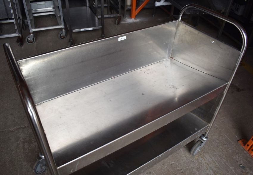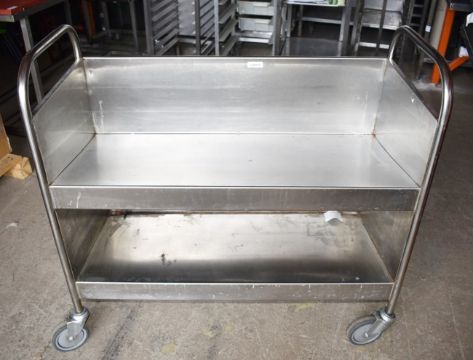 1 x Stainless Steel Trolley With Slanting Shelves and Heavy Duty Castors - Dimensions: H98 x W103 x D49 cms - Recently Removed From a Major Supermarket Store - CL669 - Ref: LCM150 WH3 - Location: Altrincham WA14