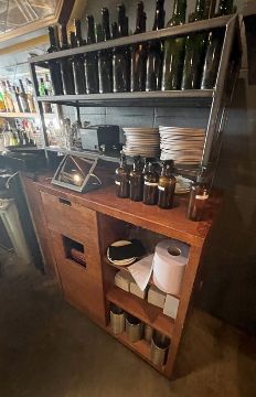 1 x Solid Wood Restaurant Supplies Cabinet With Sturdy Metal 2-Tier Glass Shelving Unit On Top - Dimensions: H170 x W133 x D55cm - CL677 - Location: London W1F
