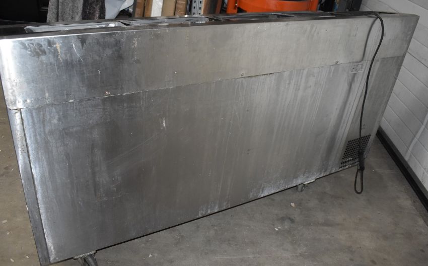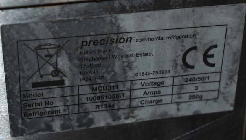 1 x Precision Three Door Countertop Refrigerator With Pizza / Salad Prep Topper and Stainless Steel Exterior - Model MCU 311 - Dimensions: H88 x W182 x D65 cms - Recently Removed From a Restaurant Environment - CL011 - Ref: SL179 C7B - Location: Altrincham WA14