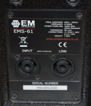 1 x EM Acoustics EMS-61 Compact Two Way Multipurpose Loudspeaker - CL999 - Ref: UNK013 - Location: Altrincham WA14