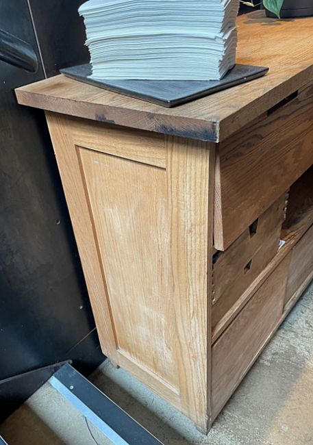 1 x Solid Wood Tableware Station Supply Cabinet Unit - Dimensions (approx): H90 x W101 x D45cm - Ref: MAN130 - CL677 - Location: London W1F