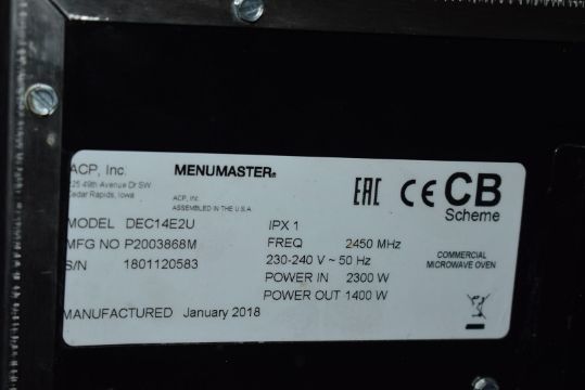 1 x Menumaster Commercial Microwave Oven - Model DEC14E2U - 1.4kW, 13A, 17Ltr - 2018 Model - Recently Removed From a Major Supermarket Store - CL232 - Ref: SL183 B5 - Location: Altrincham WA14