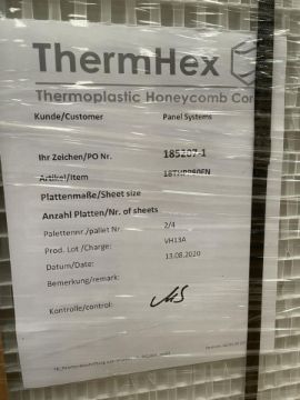 ThermHex is an innovative material primarily used in the production of lightweight sandwich panels. It is manufactured from polypropylene (PP) honeycomb that offers a weight saving of up to 85%, compared with other core materials, such as plywood.