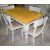 1 x Solid Wood Farmhouse Dining Table With 4 x Chairs Features Solid Oak Table Top and Upholstered Cushioned Seats - Dimensions: H76 x W120 x D66cm - Recently Removed From A Well-Known Supermarket Cafeteria - CL999 - Location: Altrincham WA14