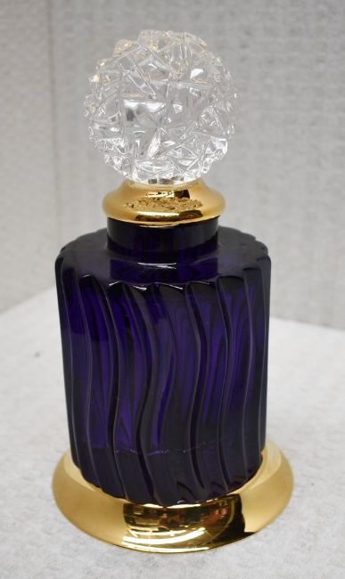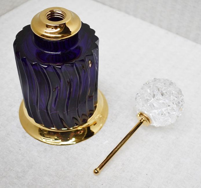 1 x BALDI 'Home Jewels' Italian Hand-crafted Artisan Crystal Perfume Bottle & Stick In Dark Violet, With A Gold Plated Bronze Base And Collar (442074) **Original RRP £1,075** Dimensions: Height 20cm / Diameter 10cm - Ref: MTE441 - PAL-D - CL087 - Location: Altrincham WA14