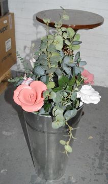 Each of the SIX Bouquets supplied comes in a galvanised metal pail, and features at least 3 x handmade clay roses amid an array of artificial silk flowers.