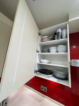 Please note that items such as small desktop appliances, ornaments, glass wall shelves, food products and contents of the drawers and cupboards etc ARE NOT included with this kitchen.