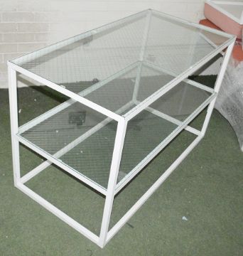 1 x 2-Tier Rectangular Metal Shop Display Unit With Glass Shelves In White - Dimensions: H75 x W120 x D60cm - Ex-Showroom Piece - Ref: 6581493 Mini - CL987 - Location: Altrincham WA14