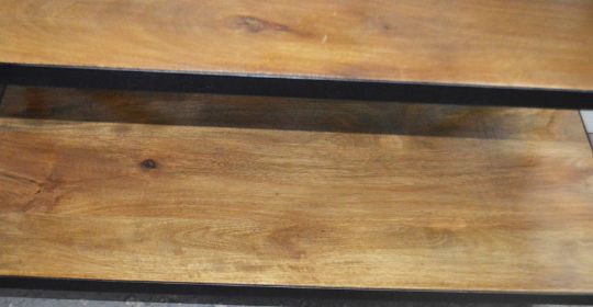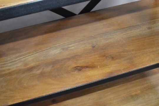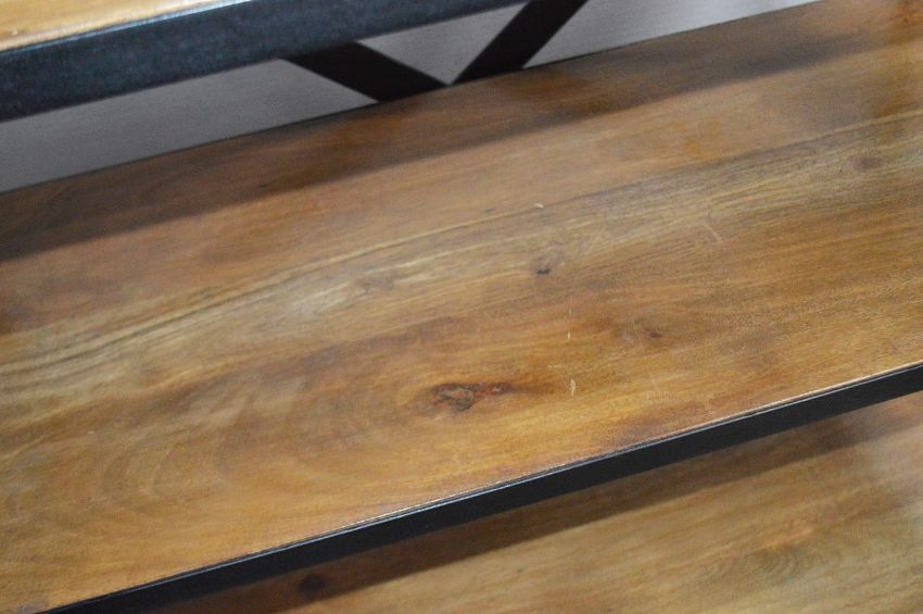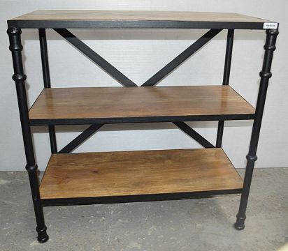 1 x 3-Tier Retail Display Unit With A Sturdy Metal X-Back Frame And Wooden Shelving - Ex-Display Showroom Piece - Dimensions: H92 x 91 x D46cm - Ref: HAR228 GIT - CL987 - Location: Altrincham WA14