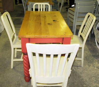 1 x Solid Wood Farmhouse Dining Table in Red With 4 x Chairs - Features A Solid Oak Table Top - Dimensions: H76 x W120 x D66cm - Recently Removed From A Well-Known Supermarket Cafeteria - CL999 - Location: Altrincham WA14