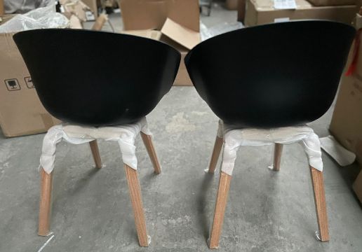 2 x Lo Black Chair Plastic On Wooden Pine Effect Legs - Dimensions: 84(h) x 52(d) x 62(w) cm - Brand New Boxed Stock - CL508 - Ref: BSC128 - Location: Altrincham WA14