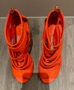 1 x Pair Of Genuine Jimmy Choo High Heel Shoes In Coral - Size: 36 - Preowned in Worn Condition - Ref: LOT2 - NO VAT ON THE HAMMER - CL594 - Location: Altrincham WA14