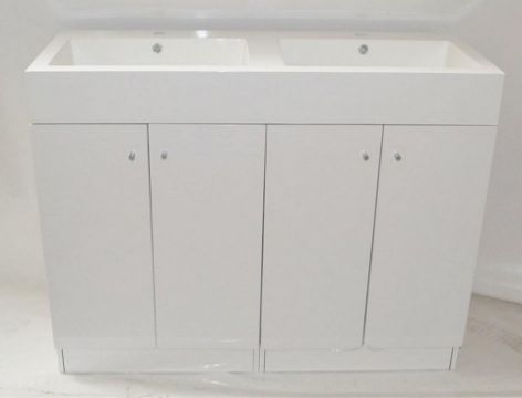 1 x Gloss White 1200mm 4-Door Double Basin Freestanding Bathroom Cabinet - New & Boxed Stock - CL307 - Location: Altrincham WA14 - Total RRP £807.00