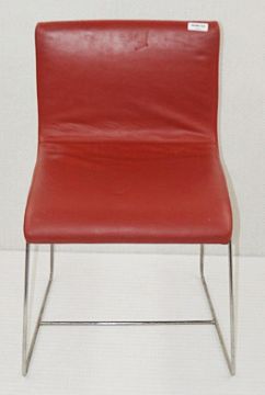 4 x Stylish Contemporary Chairs Upholstered In Red Faux Leather With Chrome Bases - Dimensions: W47 x D47 x H77cm / Seat 44cm - Ref: MHB122 - CL011/DEB - Location: Altrincham WA14