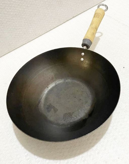1 x Wok Pan with wooden handle - Dimensions: 10½ Inch Diameter, 3½ Deep