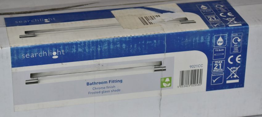 1 x Searchlight Bathroom Light Fitting - Poplar 100cm Wall Light With T5Tube, Frosted Glass Shade, Chrome Detail and IP44 Rating - Original RRP £81 - Ref: 9021CC - New Boxed Stock - CL011 - Location: Altrincham WA14