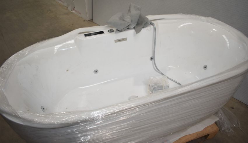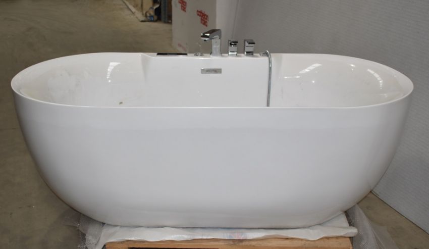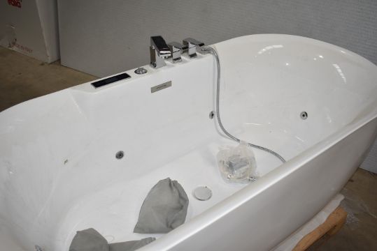 1 x Freestanding Whirlpool Acrylic Bath Tub With Digital Control Panel, Music Player, Seven Spray Jets, Shower Head, Mixer Tap and Remote Control - New and Unused - Size: 1700x780x610mm - CL011 - Location: Altrincham WA14