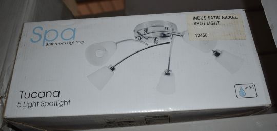 1 x Spa Bathroom Light Fitting - Tucana 5 Light Spotlight With Chrome Finish Frosted Glass Shades - Unused Boxed Stock - CL011 - Location: Altrincham WA14