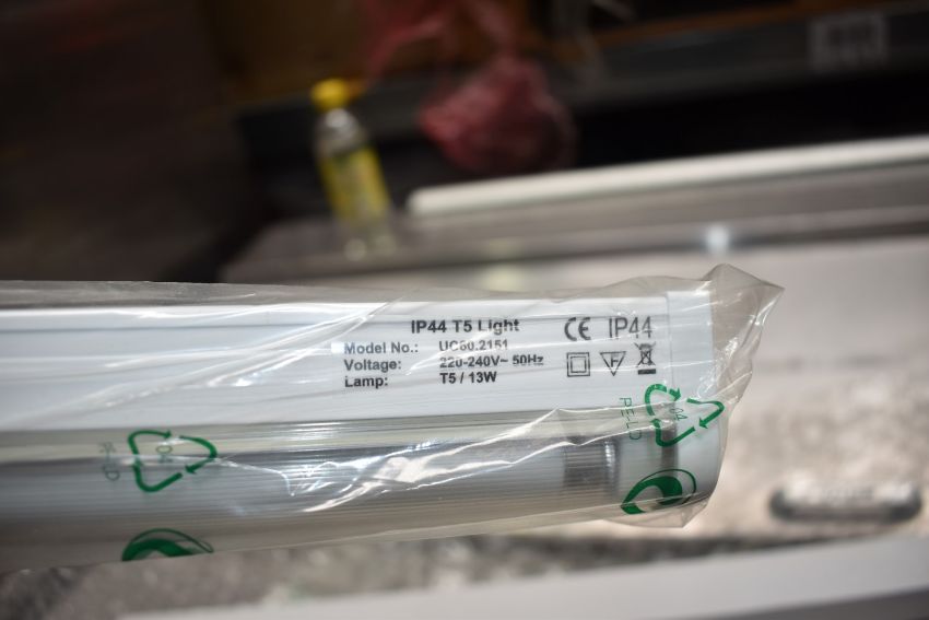 4 x Bathroom Light Fittings - IP44 Waterproof T5 14w Fluorescent Lights With Built-In Electronic Ballast - Aluminium and Plastic Construction - Size: 587x32x49mm - CL713 - New & Boxed - WH2 - Location: Altrincham WA14