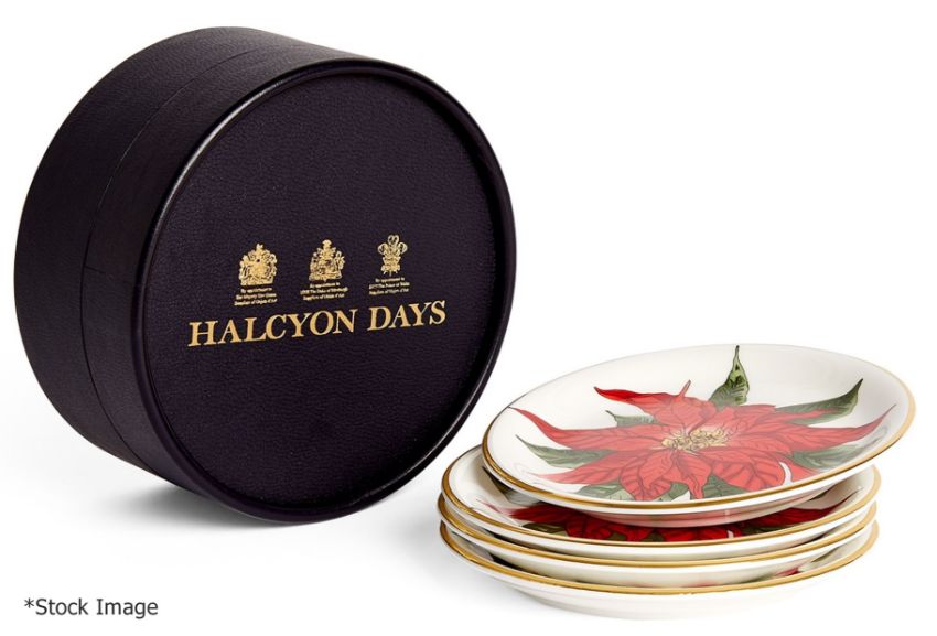 Set Of 4 x HALCYON DAYS 'Parterre' Fine Bone China Coasters - Original Price £95.00 - Unused Boxed Stock - Ref: HAS887/APR22/WH2/C1 - CL987 - Location: Altrincham WA14