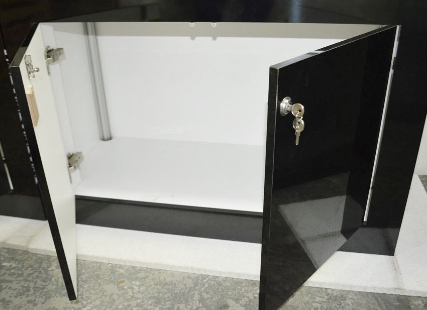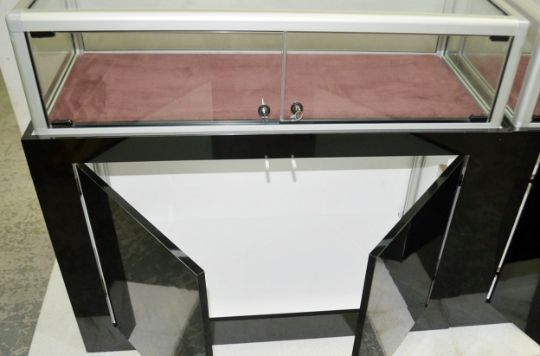 Pair Of Retail Counters With Lockable Display Cabinets And Undercounter Storage, With A High Gloss Finish - Dimensions: H92 x W104 x D46cm - Ex-Showroom Piece - Ref: HAR147 GIT - CL987 - Location: Altrincham WA14