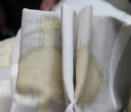 2 x Pairs Of Premium Hand-made Lined Curtains In Neutral Tone With An Abstract Design In Pale Olive - Ref: GR124+125/G-IT/PIZ - CL780 - NO VAT ON THE HAMMER - Collection Location: Altrincham WA14