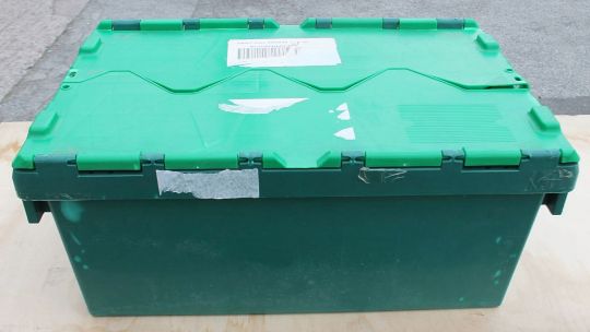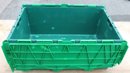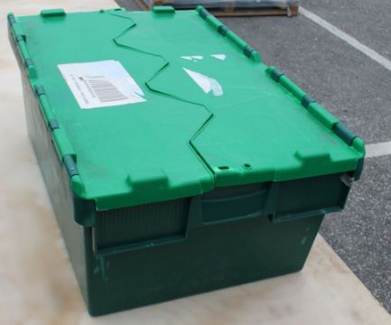 20 x Robust Low Profile Green Plastic Secure Storage Boxes With Attached Hinged Lids - Dimensions: Recently Removed From A Well-known London Department Store - Ref: G/IT OCT22 - CL987 - Location: Altrincham WA14