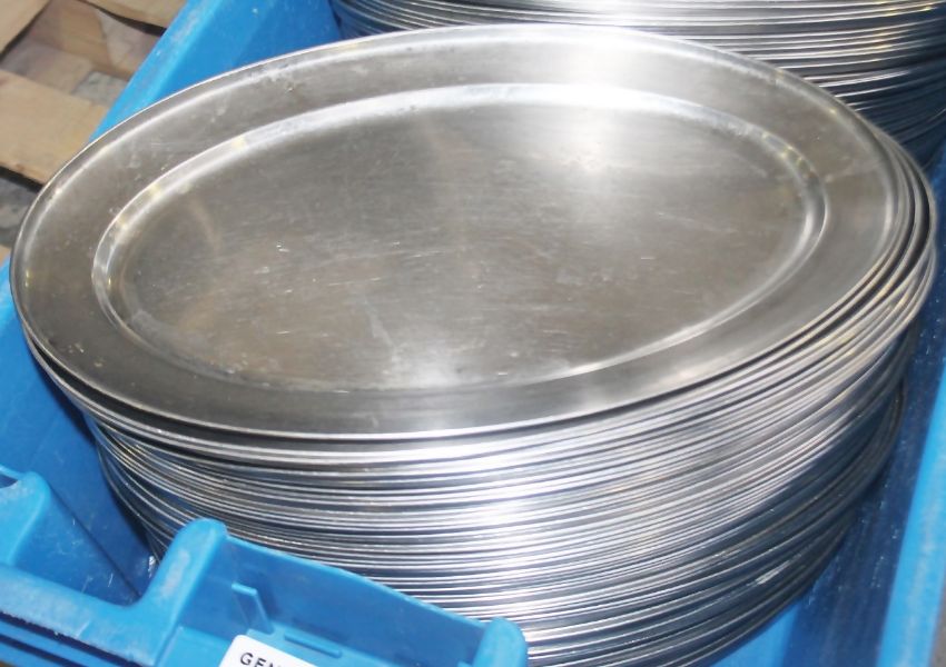 50 x Stainless Steel Oval Restaurant Serving Tray Platters - Dimensions (approx): 45 x 29cm - Recently Removed From a Popular Restaurant Environment - Ref: 1082(A) BL/WIQ - CL830 - Location: Altrincham WA14