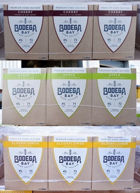 1,080 x Cans of Bodega Bay Hard Seltzer 250ml Alcoholic Sparkling Water Drinks - RESALE JOB LOT - Various Flavours Included - 4% ABV and Only 73 Calories - Best Before April 2023 - Suitable For Vegans and Vegetarians - Brand New Stock - RRP £2,400 - CL728 - Location: Altrincham WA14