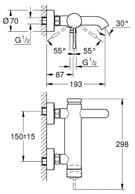 Crafted with a solid cylindrical body, distinctive curved spout and in Hard Graphite, the GROHE Essence bath mixer fits perfectly in any cool and contemporary bathroom. Simply add the hand shower of your choice and you can switch easily between bath filler and shower using the handy diverter so washing your hair in the bath has never been easier! Packed with GROHE technology, it is a delight to operate.