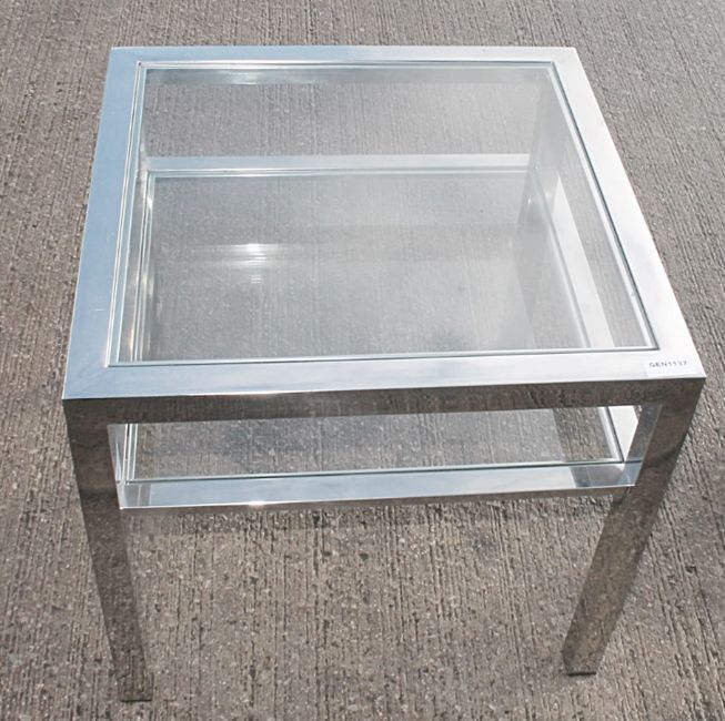1 x Glass And Chrome Square Side Table - Original Price £200.00 - Recently Relocated From An Exclusive Property - Ref: GEN1137 - CL832 - NO VAT ON HAMMER - Location: Altrincham WA14