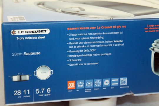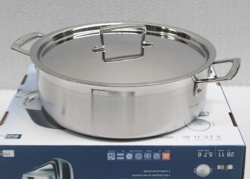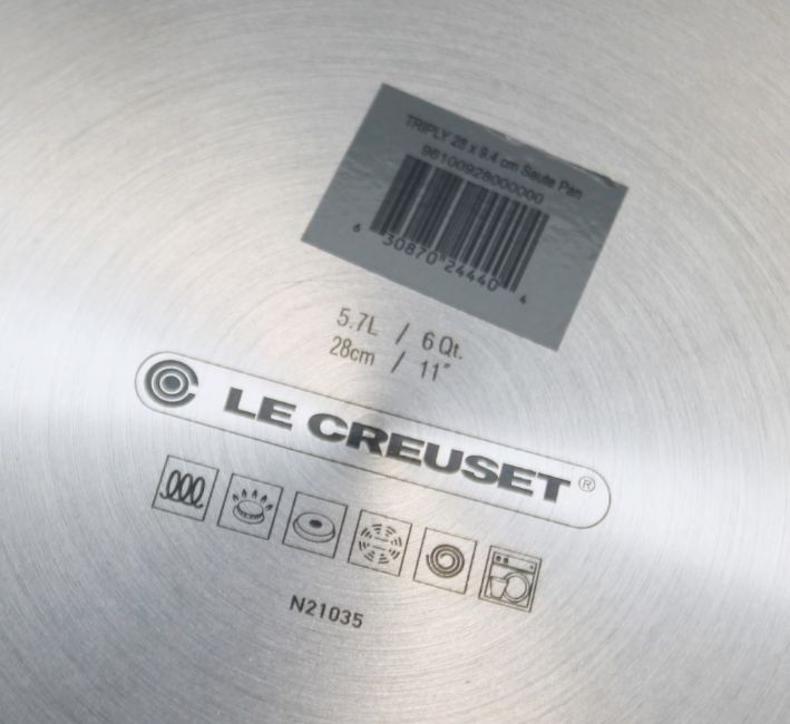 Item Description: A superb cooking experience is made possible through Le Creuset's 3-ply stainless steel pan. State-of-the-art multi-layering technology guarantees heat is spread evenly, ideal for more contemporary recipes as well as for roasts and baking when used without its practical lid.