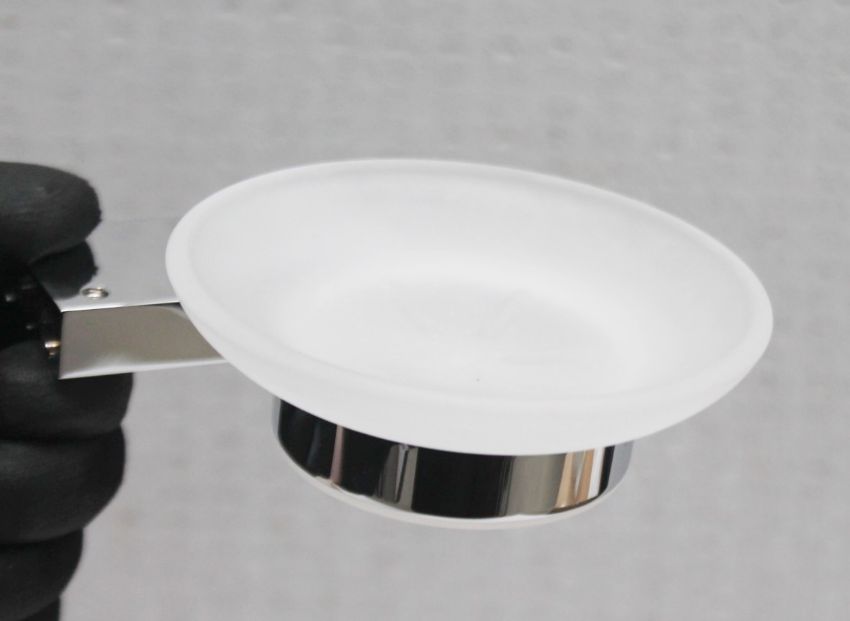 1 x WATERFRONT 'Blade' Glass Soap Dish With Holder In Chrome - Ref: BL520 - Unused Boxed Stock - CL406 - Location: Altrincham WA14