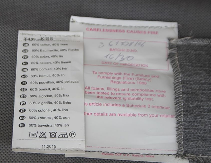 24.22 Neither In2Corporate Ltd nor the Seller represents that any Lot sold which comprises furniture or furnishings subject to the Furniture and Furnishings (Fire & Safety) Regulations 1998, or similar legislation, are in a condition which makes them suitable for domestic use. Prior to supplying such inventory for domestic use the Buyer must therefore ensure that they comply with the requirements of such laws and regulations.