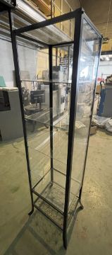 1 x Heavy Duty Black Metal Display Stand With Glass Shelving - Approx 45X40X180Cm - Ref: J116 - CL531 - Location: Essex, RM19