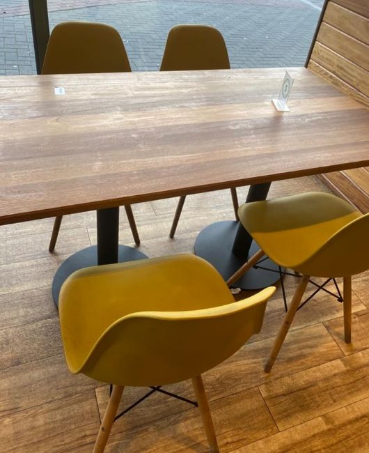 This lot is from a recently closed restaurant. All items included have signs of general use. Chairs may have minor scratches, cracks and/or chips.