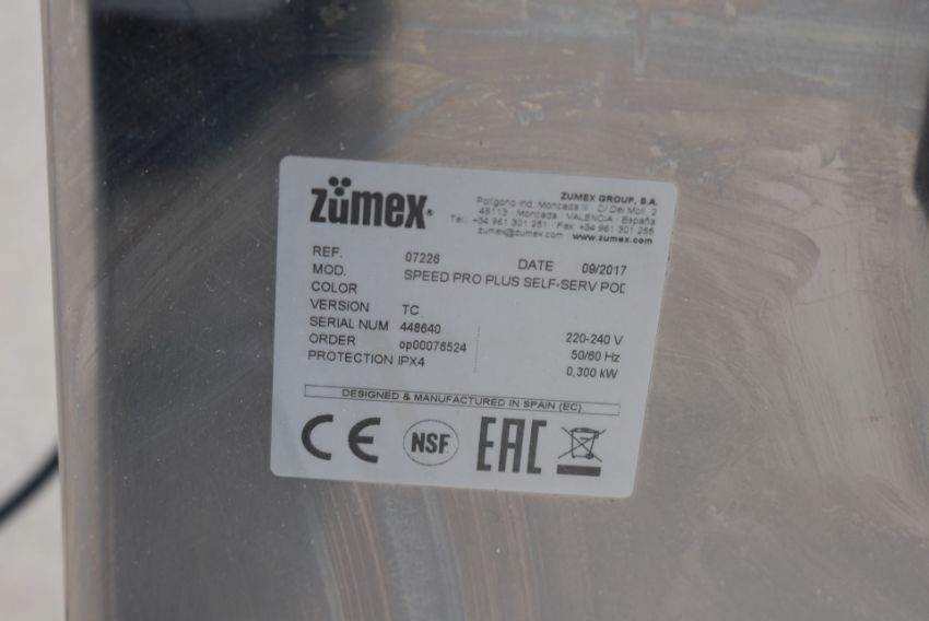 1 x Zumex Speed S +Plus Self-Service Podium Commercial Citrus Juicer - Manufactured in 2018 - Ideal For Hotels, Restaurants, Bistros or Health Food Environments - Recently Removed From Major Super Market Store - CL232 - Ref: LF282 - Location: Altrincham WA14