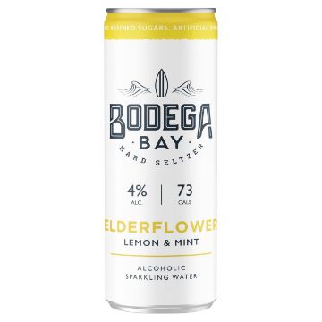 24 x Bodega Bay Hard Seltzer 250ml Alcoholic Sparkling Water Drinks - Elderflower Lemon & Mint - 4% ABV and Only 73 Calories - Best Before April 2023 - Suitable For Vegans and Vegetarians - Brand New Stock - RRP £53.50 - CL728 - Location: Altrincham WA14