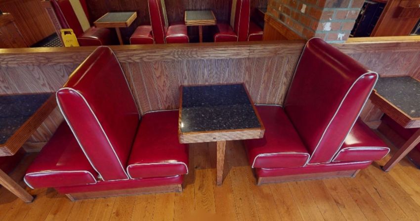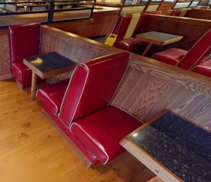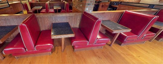 Selection of Single Seating Benches and Dining Tables to Seat Upto 10 Persons - Retro - 1950's American Diner Style With Red Faux Leather Upholstery - Includes 6 x Sections of Seating and 5 x Tables - CL805 - Location: Altrincham WA14