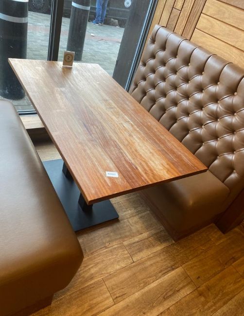 2 x High-backed, Single-sided, 2-Person Booth Seating Benches In Tan With 1 x Wooden Topped Dining Table - Approx: 1300mm Wide - Ref: RSS007 - CL835 - Location: Southend SS1