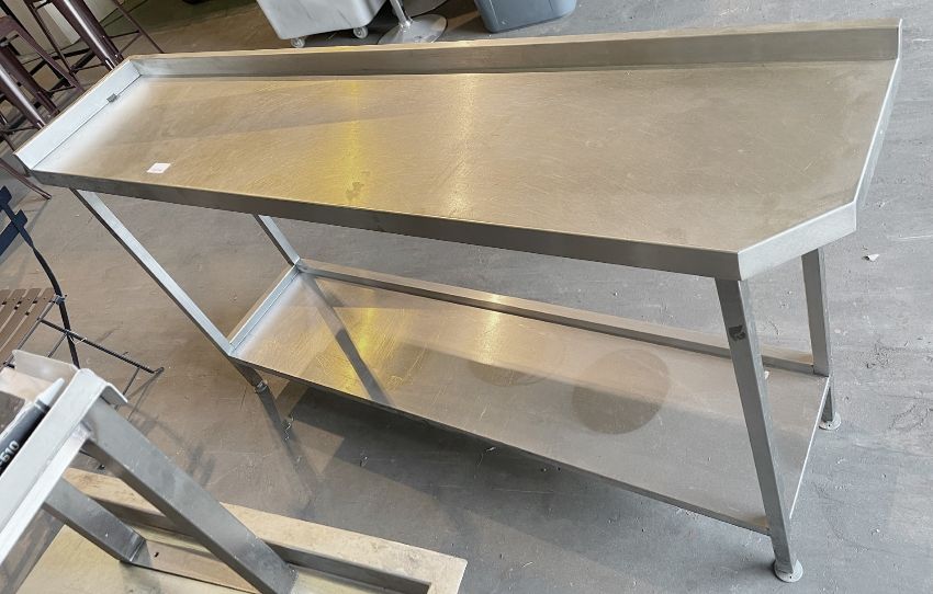 1 x Narrow Stainless Steel Prep Table With Corner Upstand - Approx 180x40x90Cm - Ref: FGN046 - CL834 - Location: Essex, RM19