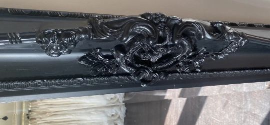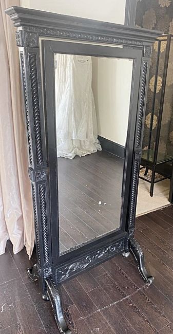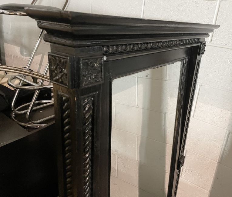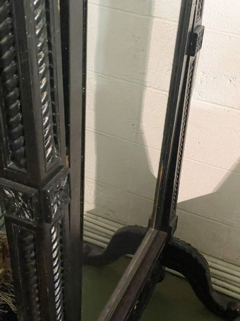 1 x Large Old Jacobean Style Floor Standing Black Mirror With Wonderful Detail - Approx 85x168Cm - Ref: J128 - CL531 - Location: Essex, RM19