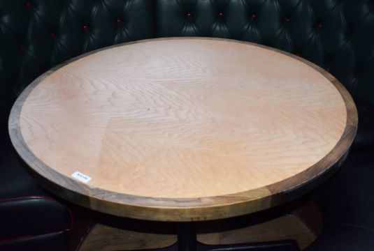 1 x Round Restaurant Table With 105cm Diameter - Features a Two Tone Wooden Top and Cast Iron Base - From a Popular American Diner - Size: H76 x Dia 105 cms - CL803 - Ref: SCC144 - Location: Altrincham WA14