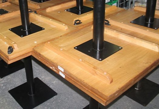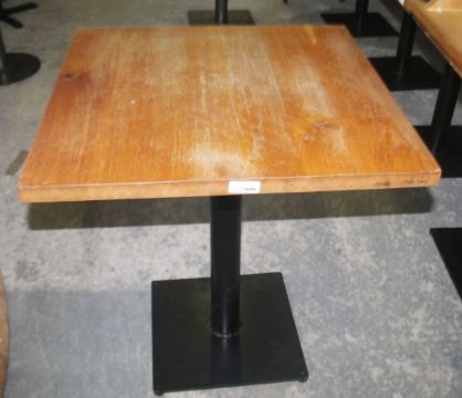 These tables were recently removed from a well known restaurant environment. We have taken some example images as we have a large number of these available. The tables come in excellent structural condition and to appear to be in good cosmetic condition. The table tops may have some minor imperfections but being solid wood they would easily refinish with little effort needed.