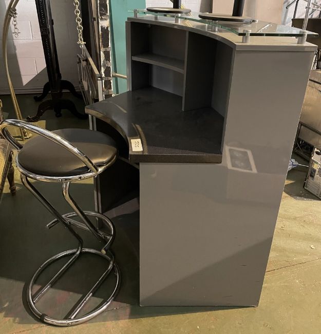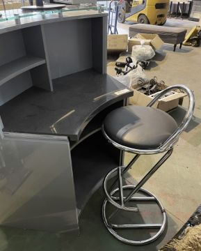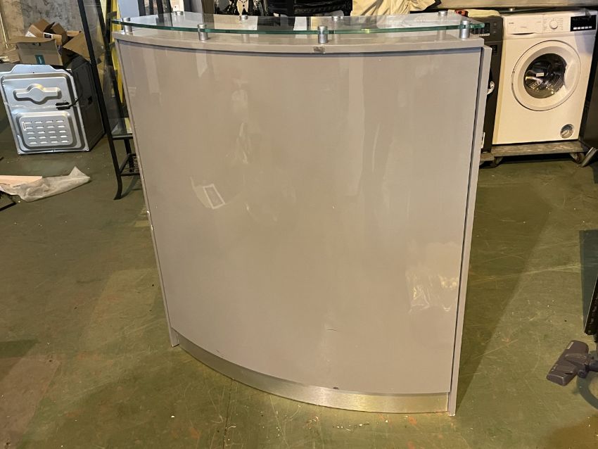 1 x Stylish And Sleek Modern Reception Desk Withsubstantiual Build And Stone Worksurface And Glass Mounted To The Top Shelf - Approx 115X60X126Cm - Ref: J125 - CL531 - Location: Essex, RM19