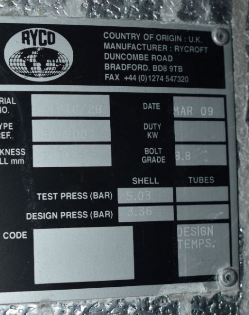 1 x Ryco SA 600 Tank - More Information to Follow - Ref: WH2-148C C6 - CL711 - Dimensions: Height 190 x Diameter 74 cms - Location: Altrincham WA14
