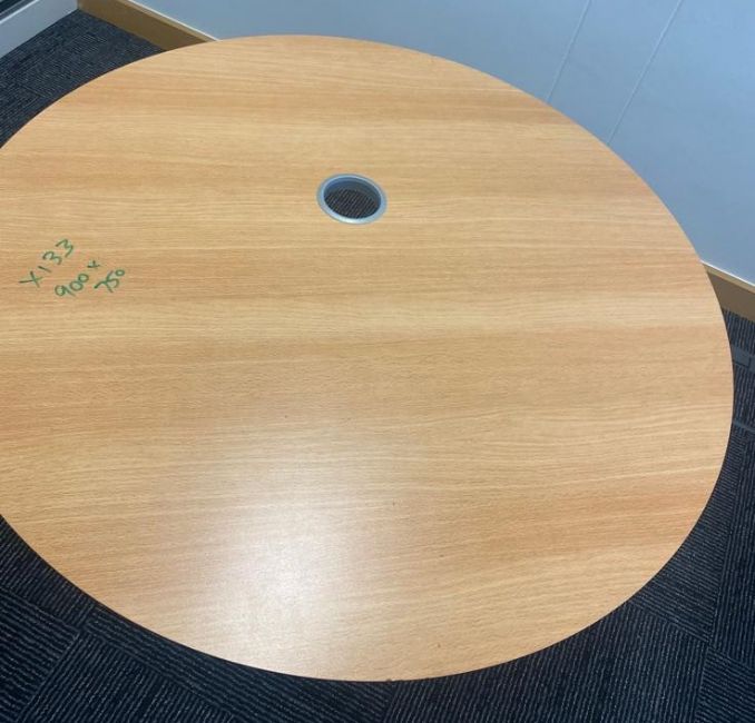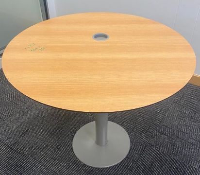 1 x Round Office Meeting Table With a Beech Wood Finish and Grey Pedestal Base - Size: H75 x W90 cms - Ref: X133 - CL842 - Location: Crawley, RH10
