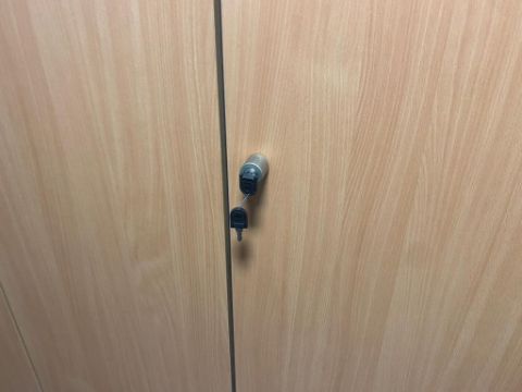 1 x Four Door Upright Office Storage Unit With Beech Wood Doors and Internal Shelves - Includes Keys - Comes in Two Separate Units For Easy Removal/Transportation - Size: 272 x 206 cms - Ref: X126 - CL842 - Location: Crawley, RH10