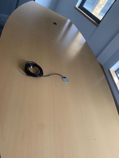 1 x Executives 10ft Boardroom Meeting Table With a Two Piece Light Wood Top - Features Two Central Pop Up Electrical Plug Towers - Size: 310 x 156 cms - Ref: X140 - CL842 - Location: Crawley, RH10
